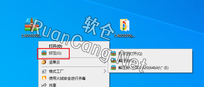 1鼠标右击【CAD2020】压缩包选择【解压到 CAD2020】。