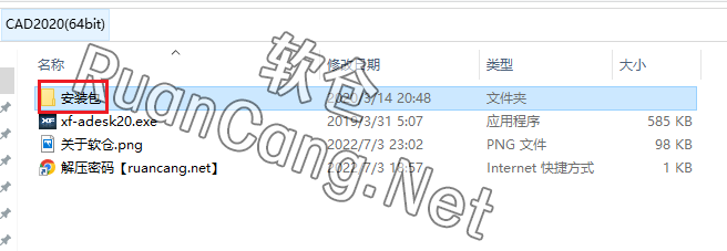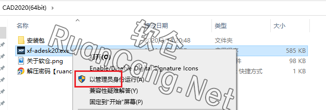 18.打开安装包解压后的【CAD2020(64bit)】文件夹,鼠标右击【xf-adesk20】选择【以管理员身份运行】。