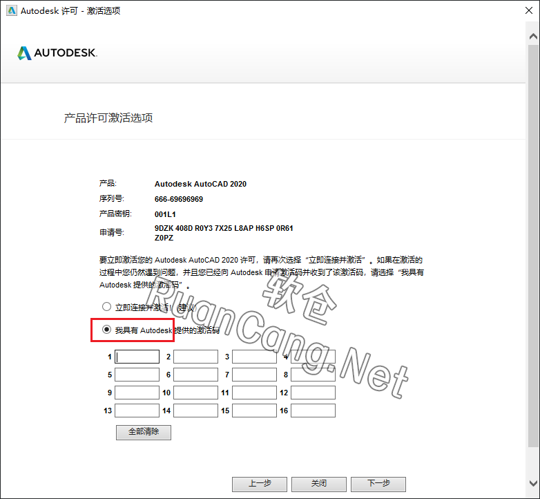 17.选择【我具有Autodesk提供的激活码】(不要关闭此界面)。