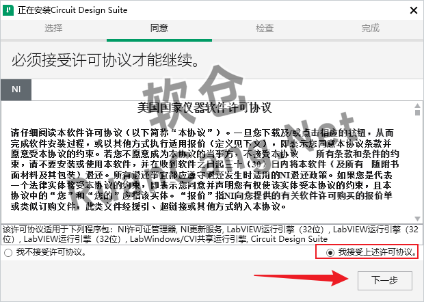 8.勾选【我接受上述许可协议】,点击【下一步】。