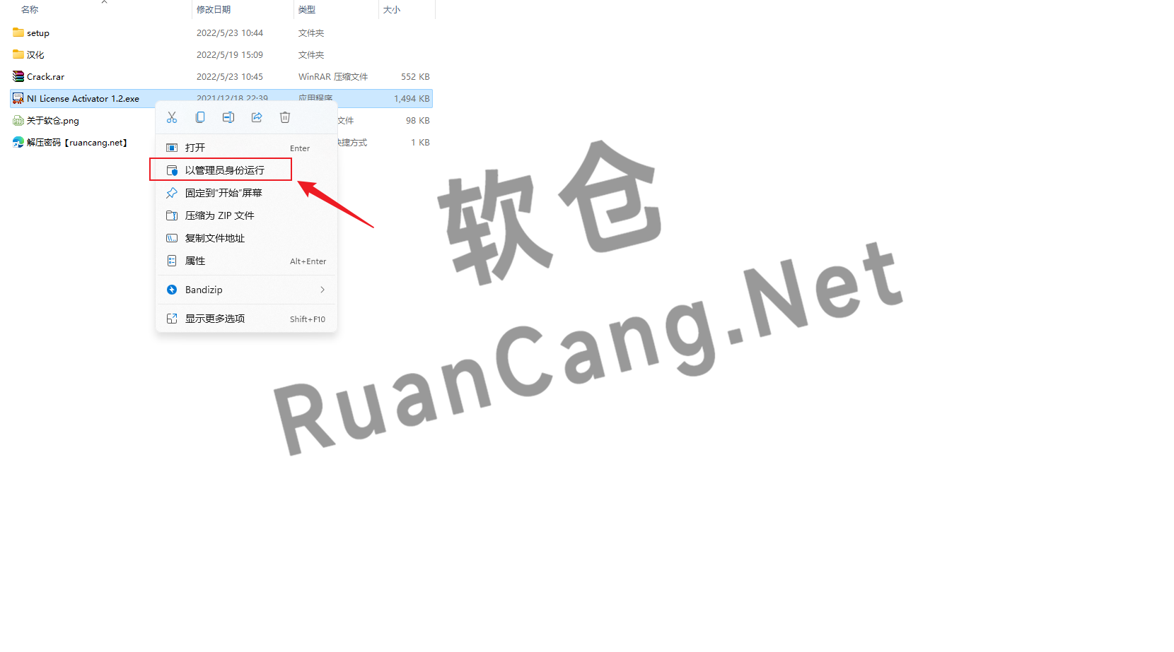 15.鼠标右击解压后的【NI License Activator 1.2】选择【以管理员身份运行】。
