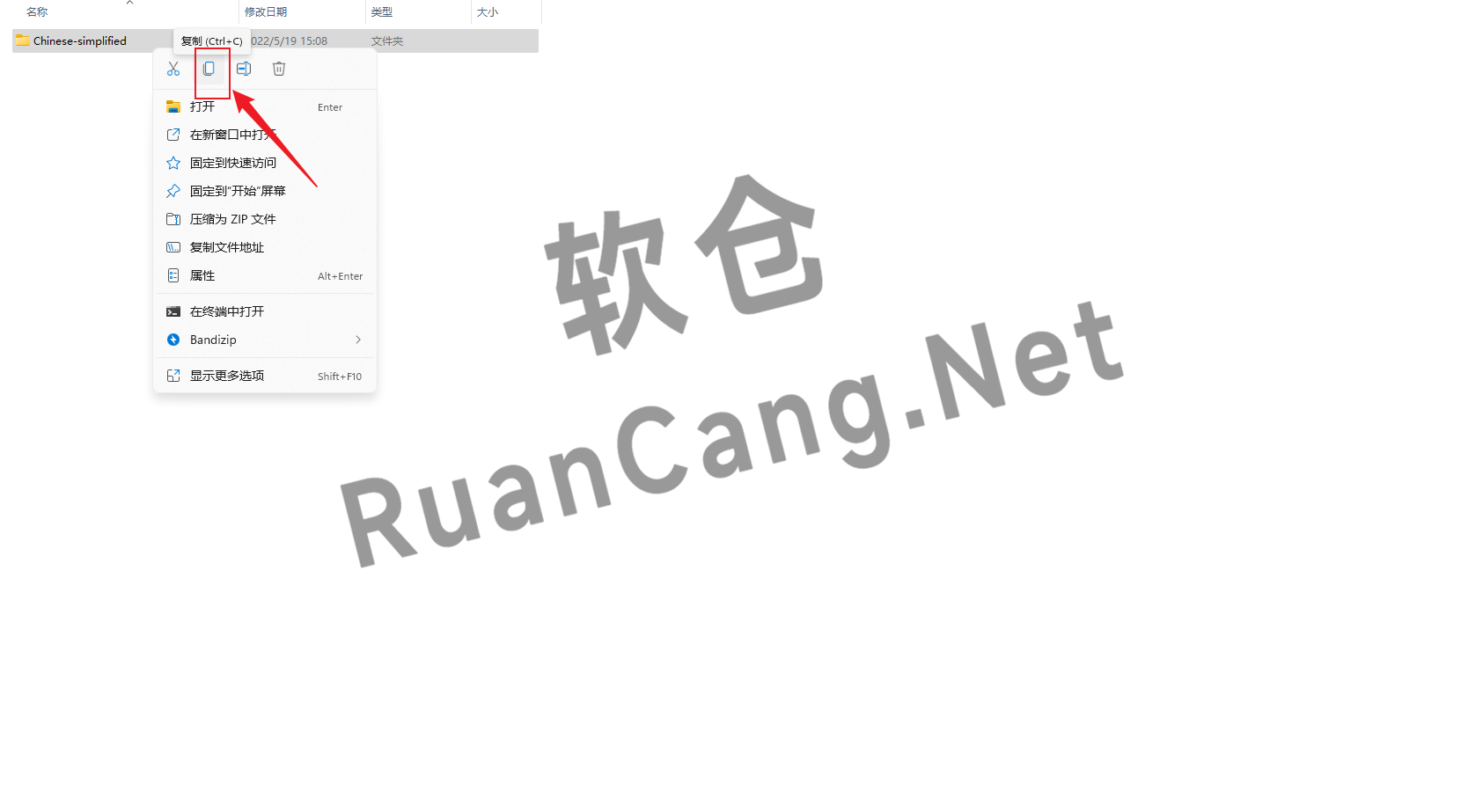19.鼠标右击【Chinese-simplified】选择【复制】。