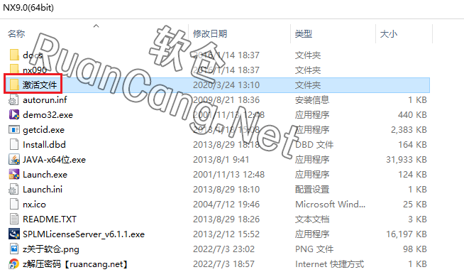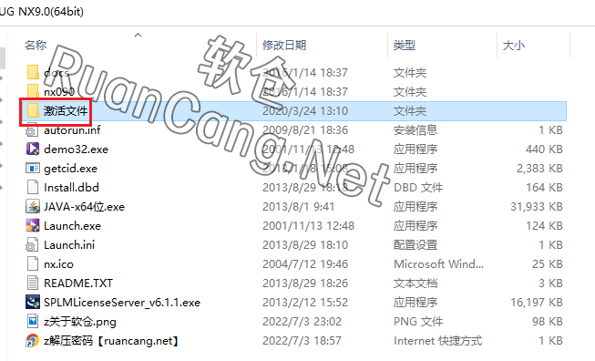 6.打开安装包解压后的【UG NX9.0(64bit)】文件夹中的【激活文件】文件夹。
