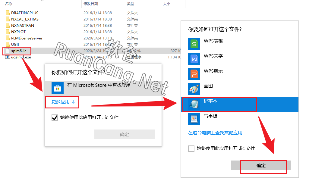 7.双击打开【splm6.lic】,选择【记事本】,点击【确定】。
