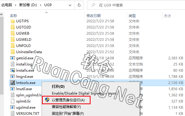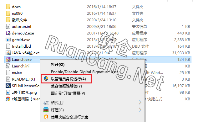 10.打开安装包解压后的【UG NX9.0(64bit)】文件夹,鼠标右击【Launch】选择【以管理员身份运行】。