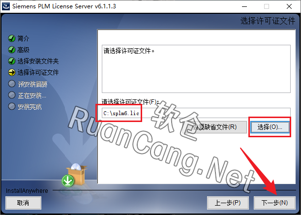 15.点击【选择】选择【splm6】文件(此文件位于C盘中,步骤9保存后,随后复制到了C盘中),点击【下一步】。