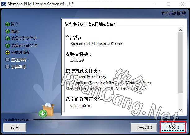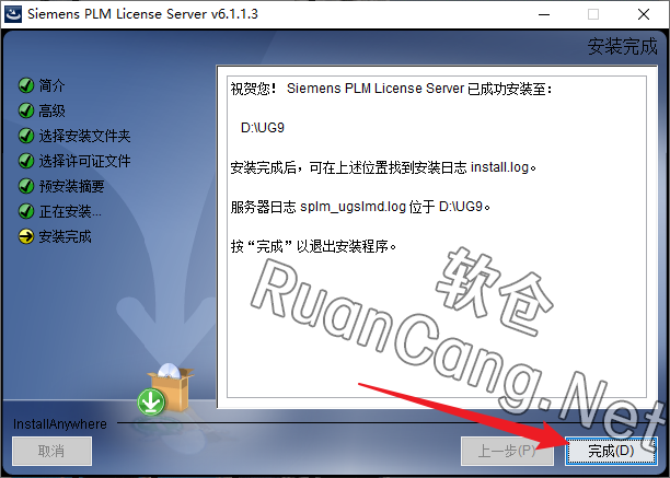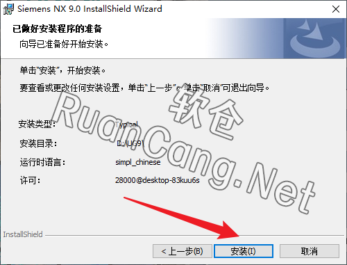 24.点击【“更改】选择“步骤14”中新建的【UG9】文件夹,点击【下一步】。