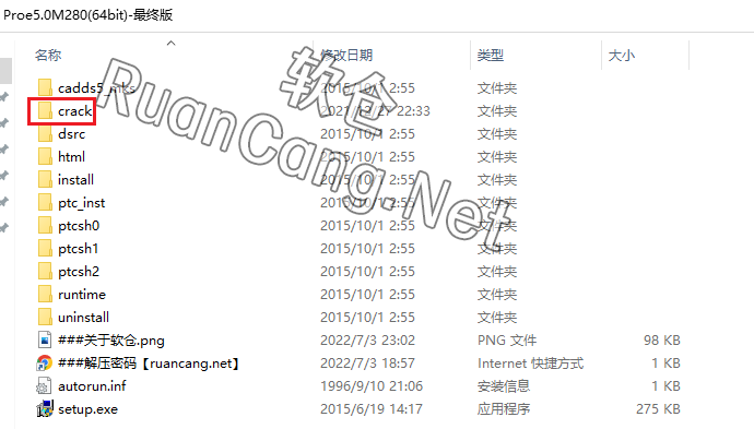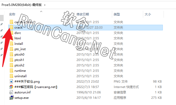 23.打开安装包解压后的【Proe5.0M280(64bit)】文件夹,双击打开【Crack】文件夹。