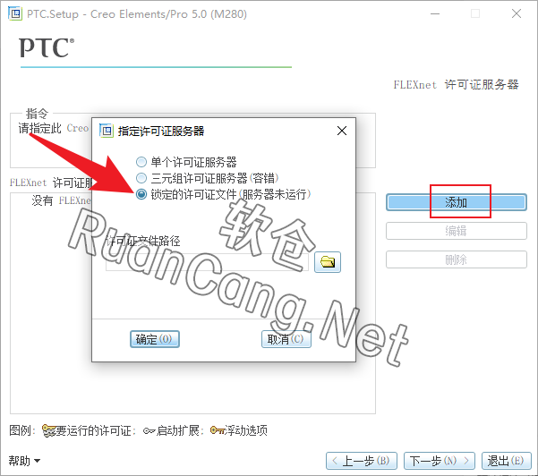 14.点击【添加】,选择【锁定的许可证文件(服务器未运行)】。