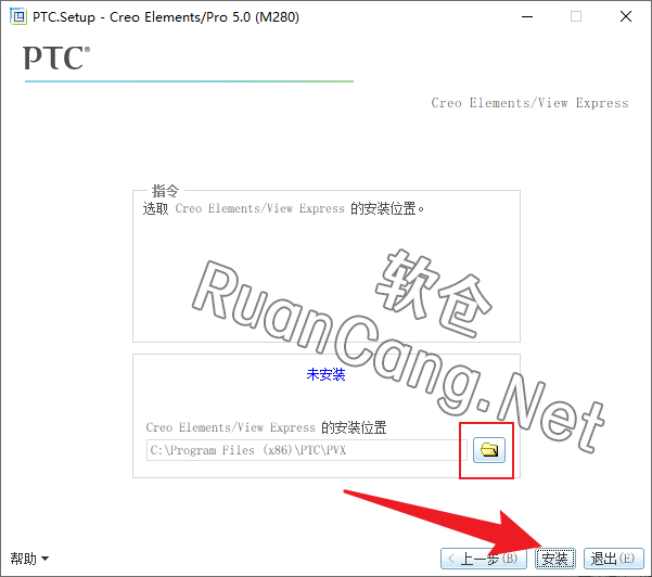 19.点击图中所示【文件夹图标】可更改安装位置(我这里保持默认),点击【安装】。