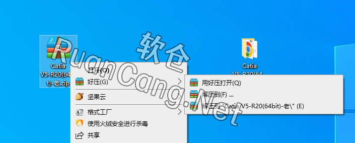 1.鼠标右击【CatiaV5-6R20(64bit)】压缩包选择【解压到 CatiaV5-6R20(64bit)】。