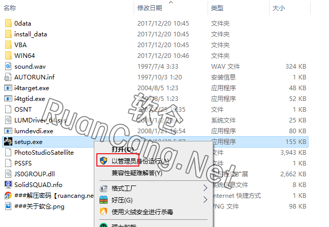 2.打开解压后的文件夹,鼠标右击【setup】选择【以管理员身份运行】。