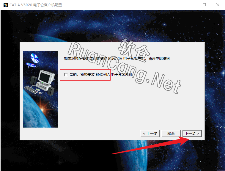 10.根据自己需求选择勾选是否安装电子仓客户机,点击【下一步】。