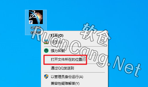 17.鼠标右击桌面【CatiaV5-6R20】图标选择【打开文件所在位置】。