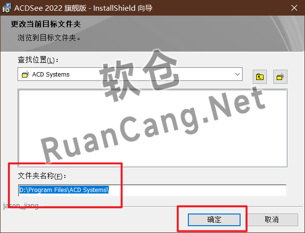 6.修改路径地址中的首字符C可更改安装位置(如:将C改为D表示安装到D盘),点击【确定】。