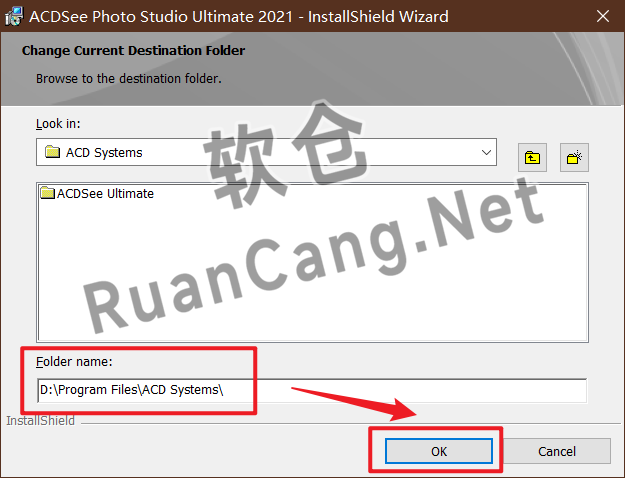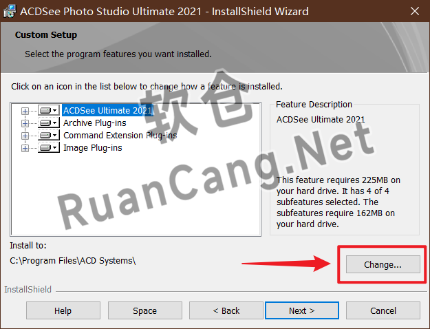 ☉6.点击【Change……】,修改路径地址“C:Program FilesACD Systems”中的“C”可更改安装位置,点击【OK】。