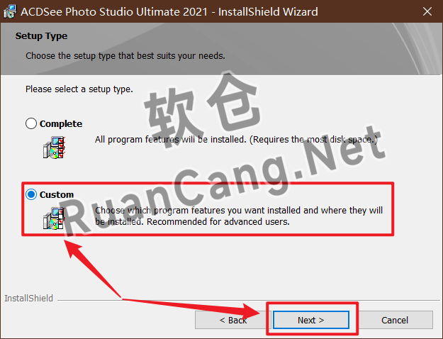☉5.选择【Custom】,点击【Next】。