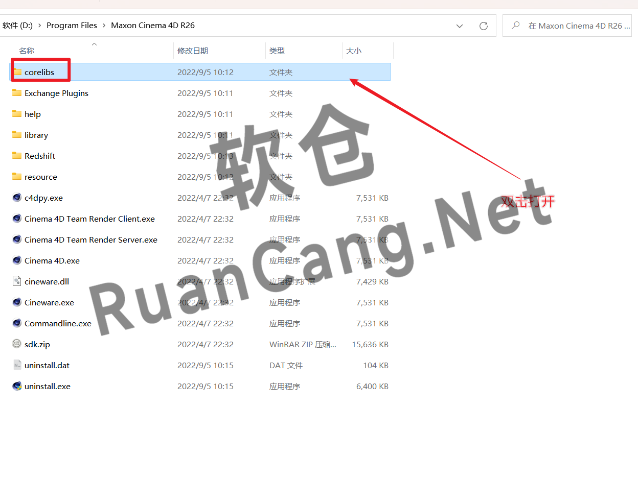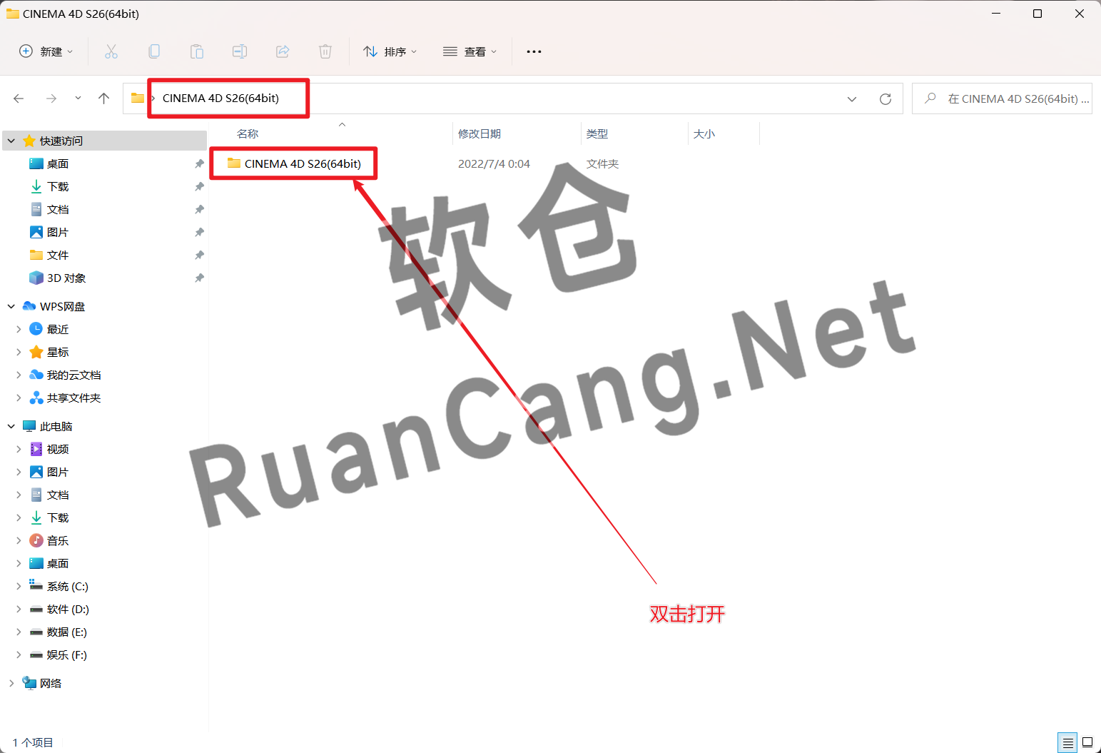 2.双击打开解压后的【C4D S26(64bit)】文件夹。