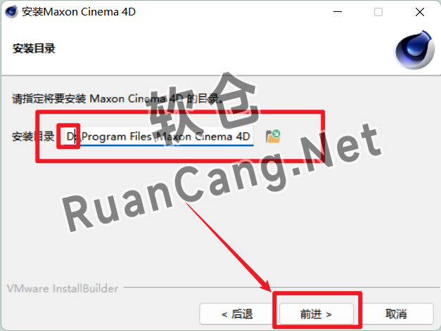 5.修改路径地址中的首字符C可更改安装位置(如:将C改为D软件将安装到D盘),点击【前进】。