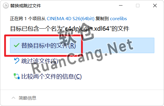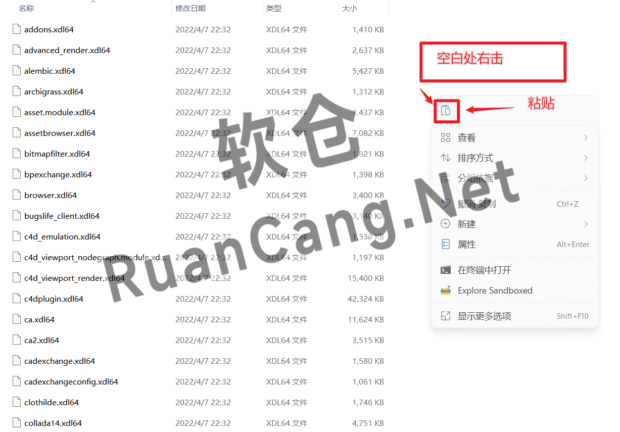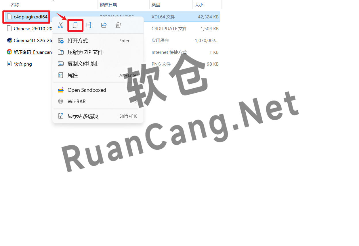 10.打开安装包解压后的【C4D S26(64bit)】文件夹,鼠标右击【c4dplugin.xdl64】选择【复制】。