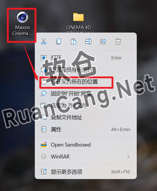 11.鼠标右击桌面【Maxon Cinema 4D 26】图标选择【打开文件所在的位置】。