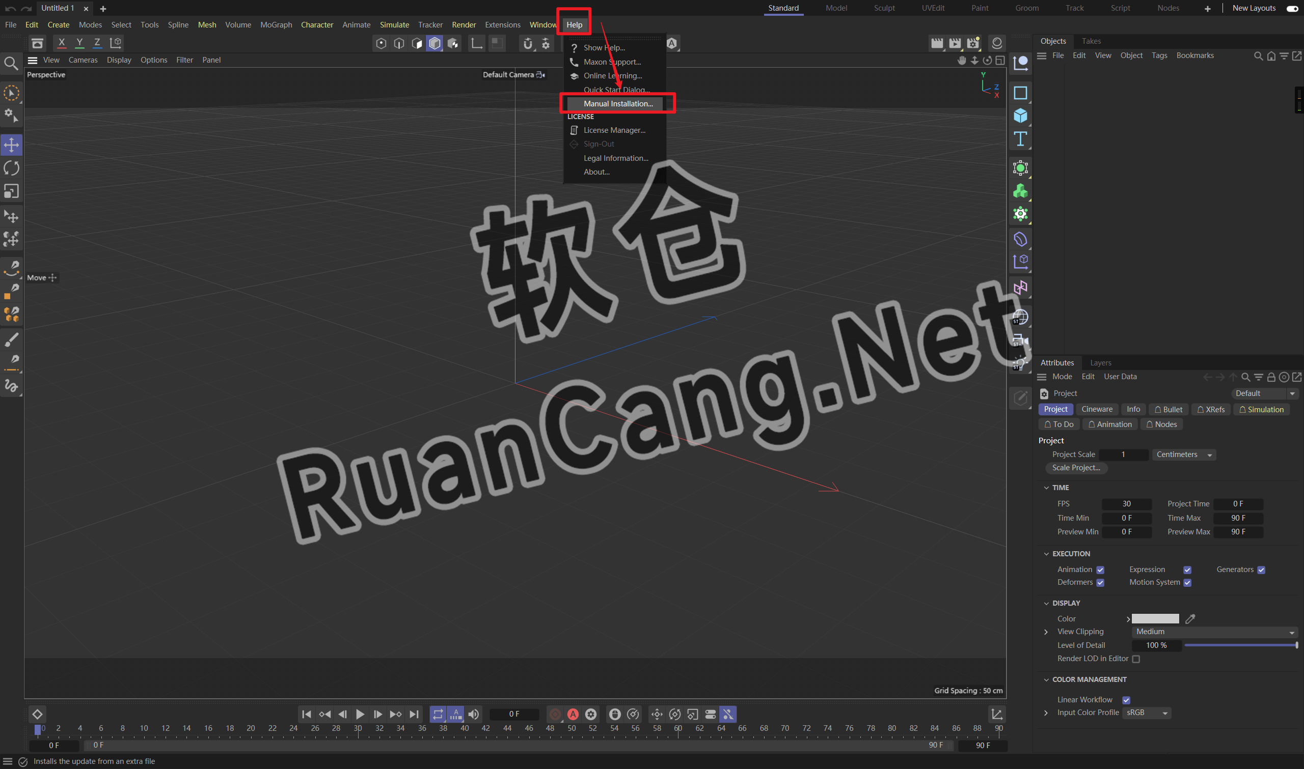 17.点击软件菜单栏中的【Help】选择【Manual Installation……】。