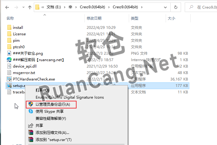 2.打开解压后的文件夹,鼠标右击【setup】选择【以管理员身份运行】。