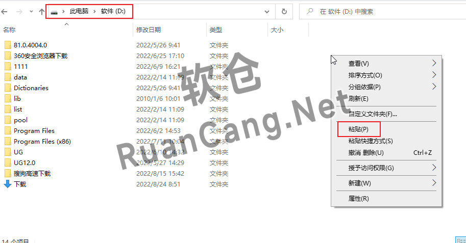 7.打开磁盘(如:D盘,或其他盘),鼠标右击空白处选择【粘贴】。